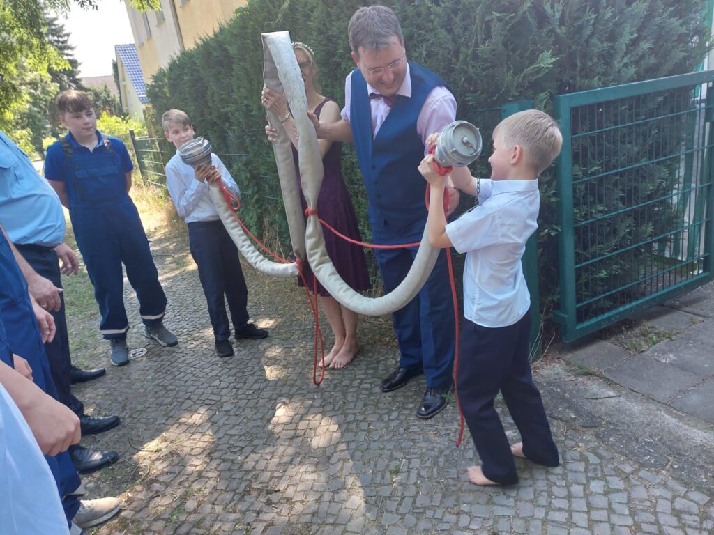 Es war nicht einfach nur ein Stück Feuerwehrschlauch, nein, es war schwer und ich dachte erst, die sind immer so schwer! Am nächsten Tag sollte sich herausstellen, was ihn so schwer machte! Uns wurde geraten den Schlauch im Wohnzimmer zu leeren, was wir natürlich NICHT taten.
